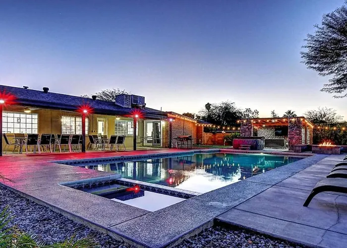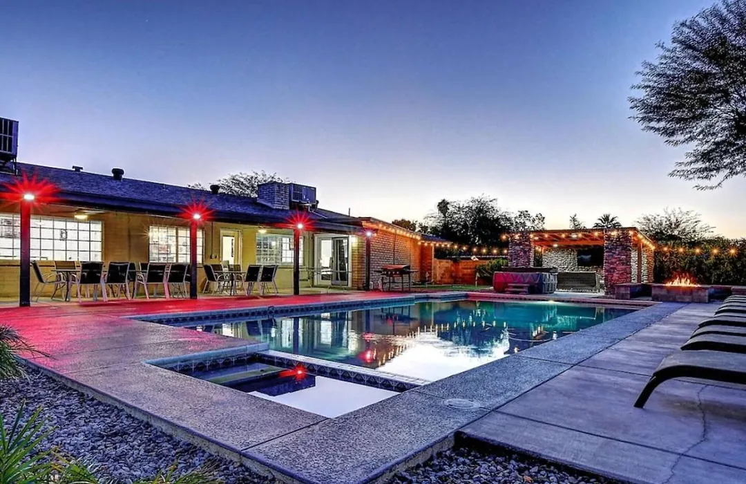 Com piscina privada para relaxamento dos hóspedes, a pousada 9 Large Bedrooms Game Lounge Fire Pit Phoenix está localizada 4.8 km de Phoenix Mountains Preserve.